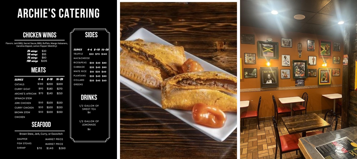 Archies specializes in Jamaican and West African cuisine, offering a vibrant array of flavors.
